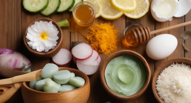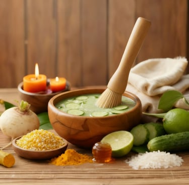 Traditionally, rice water was used as a daily facial cleanser, while turnip, lemon, and cucumber juices acted as natural toners. Scrubs were made from turmeric and rice, and masks used honey, egg, and clay — a skincare practice that embodies the “kitchen as beauty salon” philosophy.
