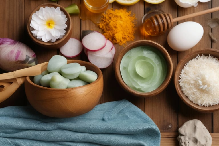 Soaked rice water was used as a natural cleanser; turnip, lime, and cucumber juices acted as toners; scrubs were made from rice mixed with turmeric; and facial masks were prepared with rice pearls, honey, egg, or clay. These simple yet powerful remedies have stood the test of time.